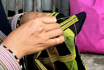 The hand-embroidered brocade of the Red Dao women in Sa Pa is very unique, with its distinctive patterns and vibrant colors. To make a complete costume, each woman must spend a lot of time and effort. The meticulousness in each stage has created the unique features of the Red Dao ethnic costume.