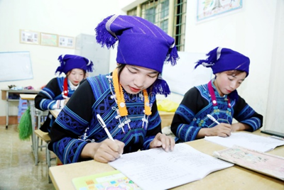 Highland communes open many literacy classes for ethnic minorities, creating opportunities for illiterate Ha Nhi women to go to school and learn to read and write.