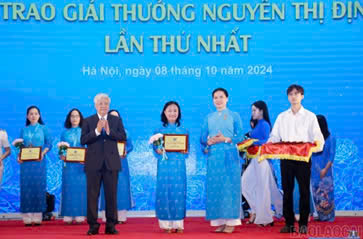 On October 8, in Hanoi, the Central Committee of the Vietnam Women's Union organized the first Nguyen Thi Dinh Award ceremony and honored the exemplary district women's union chairwoman nationwide in 2024.