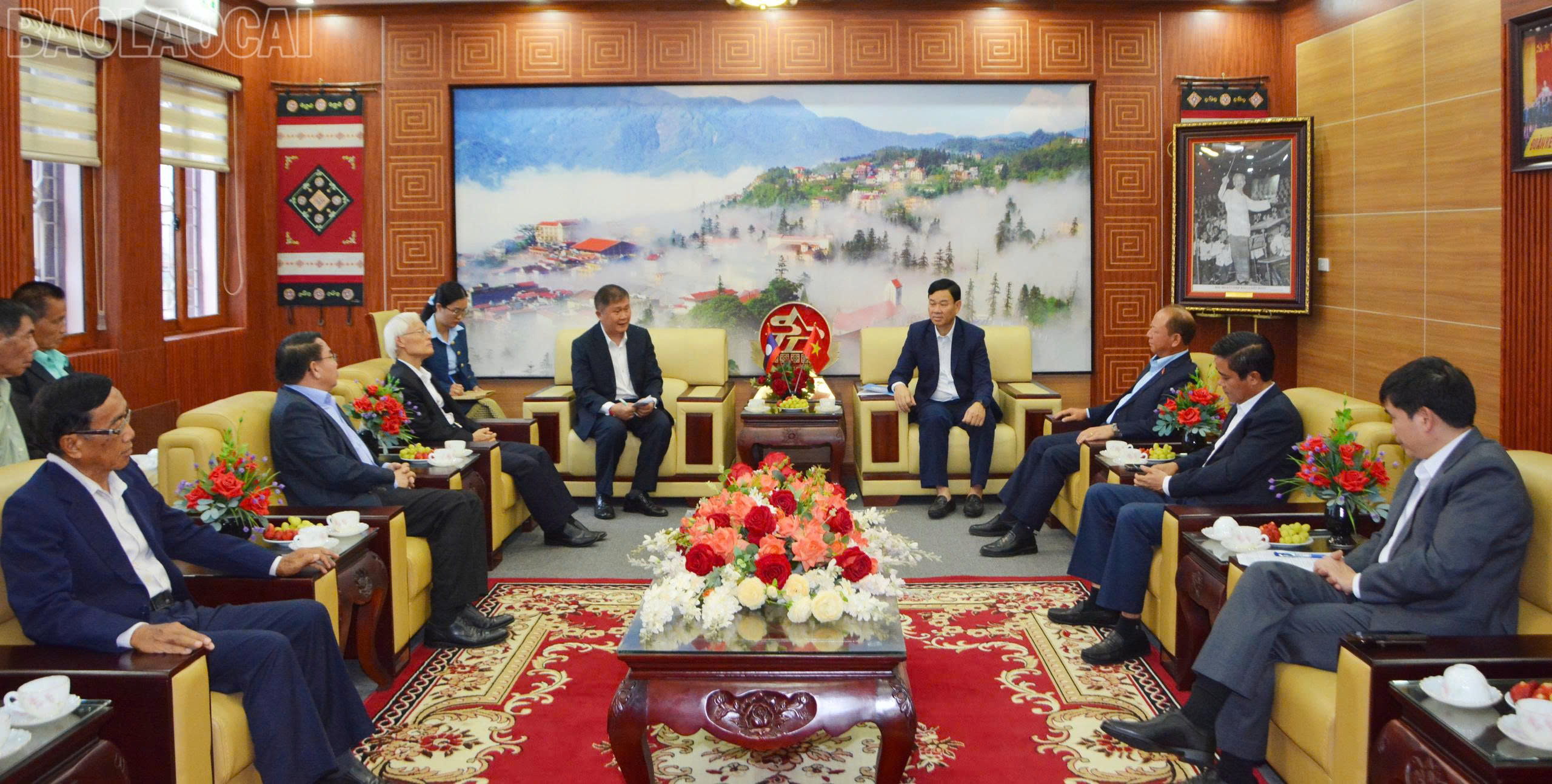 On the afternoon of April 25, in Sa Pa town, Lao Cai provincial leaders received the delegation of the Lao National Assembly Secretariat.