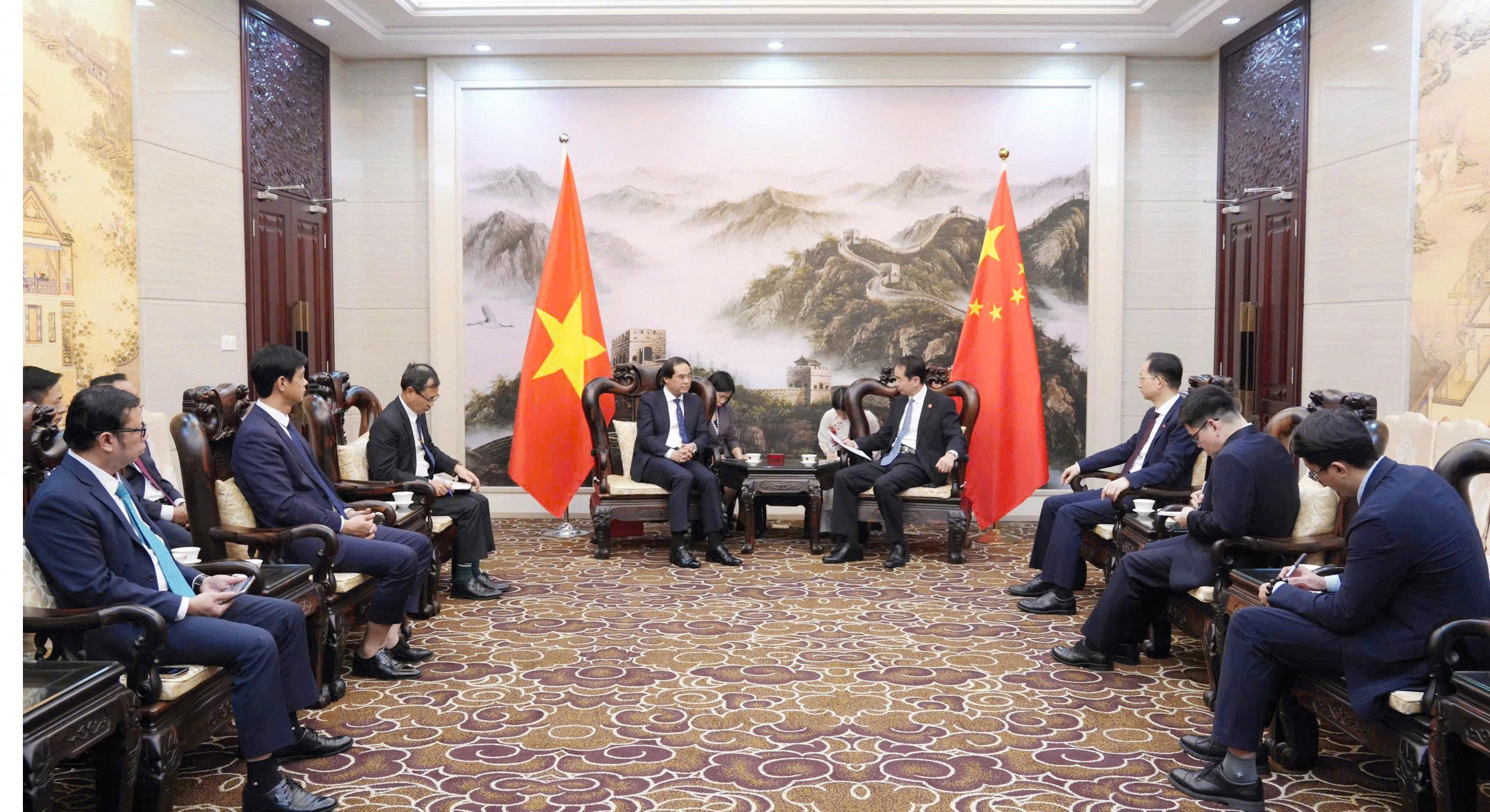 On the afternoon of March 7, in Hanoi, a delegation of Lao Cai province led by Mr. Trinh Xuan Truong, Secretary of the Provincial Party Committee and Chairman of the Provincial People's Committee, visited and worked with the Chinese Embassy in Vietnam. The delegation included leaders of a number of provincial departments and branches.
