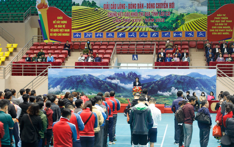 Trong 02 ngày, từ ngày 02-03/12, tại Nhà thi đấu Đa năng tỉnh, Sở Văn hoá và Thể thao tỉnh Lào Cai tổ chức Giải cầu lông, bóng bàn, bóng chuyền hơi chung kết các khối thi đua tỉnh Lào Cai lần thứ XXIV năm 2022. Giải đấu diễn ra sôi nổi với sự tham gia của trên 400 vận động viên của 14 đoàn đến từ các cơ quan, đơn vị trong các khối thi đua của tỉnh.