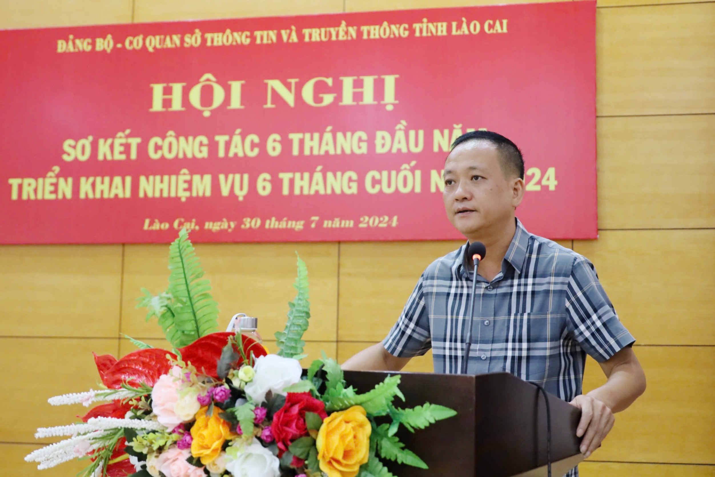Đồng chí Tăng Văn Hạnh - Phó Giám đốc Sở thông qua báo cáo sơ kết công tác 6 tháng đầu năm và triển khai nhiệm vụ 6 tháng cuối năm 2024 của Đảng bộ, cơ quan Sở Thông tin và Truyền thông.
