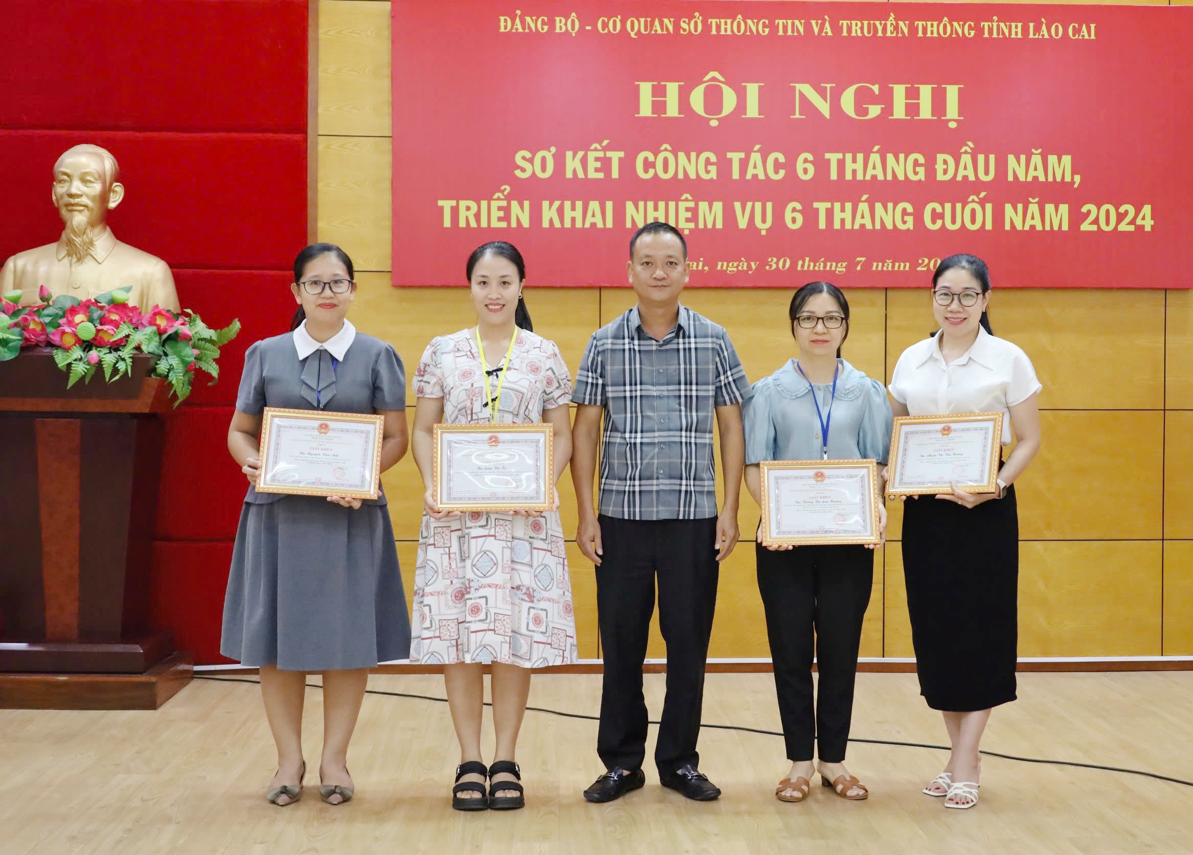 Lãnh đạo Sở Thông tin và Truyền thông trao Giấy khen của Giám đốc Sở cho các cá nhân đạt thành tích xuất sắc trong 6 tháng đầu năm 2024.