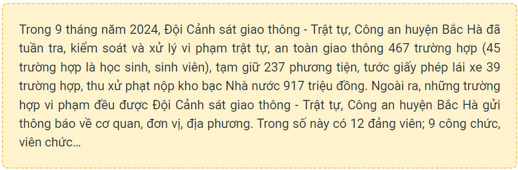 Đây cũng là hoạt động nhằm thực hiện nghiêm túc, hiệu quả Chỉ thị số 31/CT-TTg của Thủ tướng Chính phủ về tăng cường công tác bảo đảm trật tự, an toàn giao thông cho lứa tuổi học sinh trong tình hình mới; thực hiện chỉ đạo của lãnh đạo Bộ Công an, Công an tỉnh, Công an huyện Bắc Hà triển khai tháng cao điểm bảo đảm trật tự, an toàn giao thông cho lứa tuổi học sinh, từ ngày 1 - 31/10.