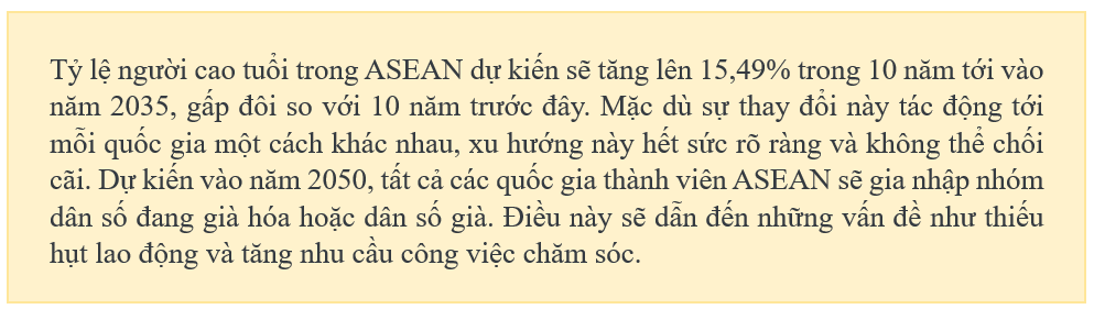 Dự kiến vào năm 2050, tất cả các quốc gia thành viên ASEAN sẽ gia nhập nhóm dân số đang già hóa hoặc dân số già. Điều này sẽ dẫn đến những vấn đề như thiếu hụt lao động và tăng nhu cầu công việc chăm sóc. Việt Nam đã xây dựng một khuyến nghị chung về vấn đề này để gửi đến Diễn đàn Lao động di cư ASEAN lần thứ 17 sắp diễn ra tại Lào tới đây.