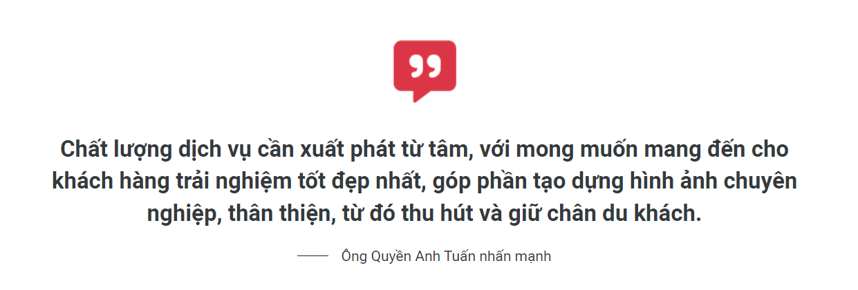 Ông Quyền Anh Tuấn, Trưởng Bộ phận Chăm sóc khách hàng, Khu du lịch Sun World Fansipan Legend khẳng định: Có nhiều giải pháp để thu hút khách, nhưng chất lượng dịch vụ mới là “chìa khóa vạn năng” để mở cánh cửa thành công cho ngành dịch vụ du lịch.
