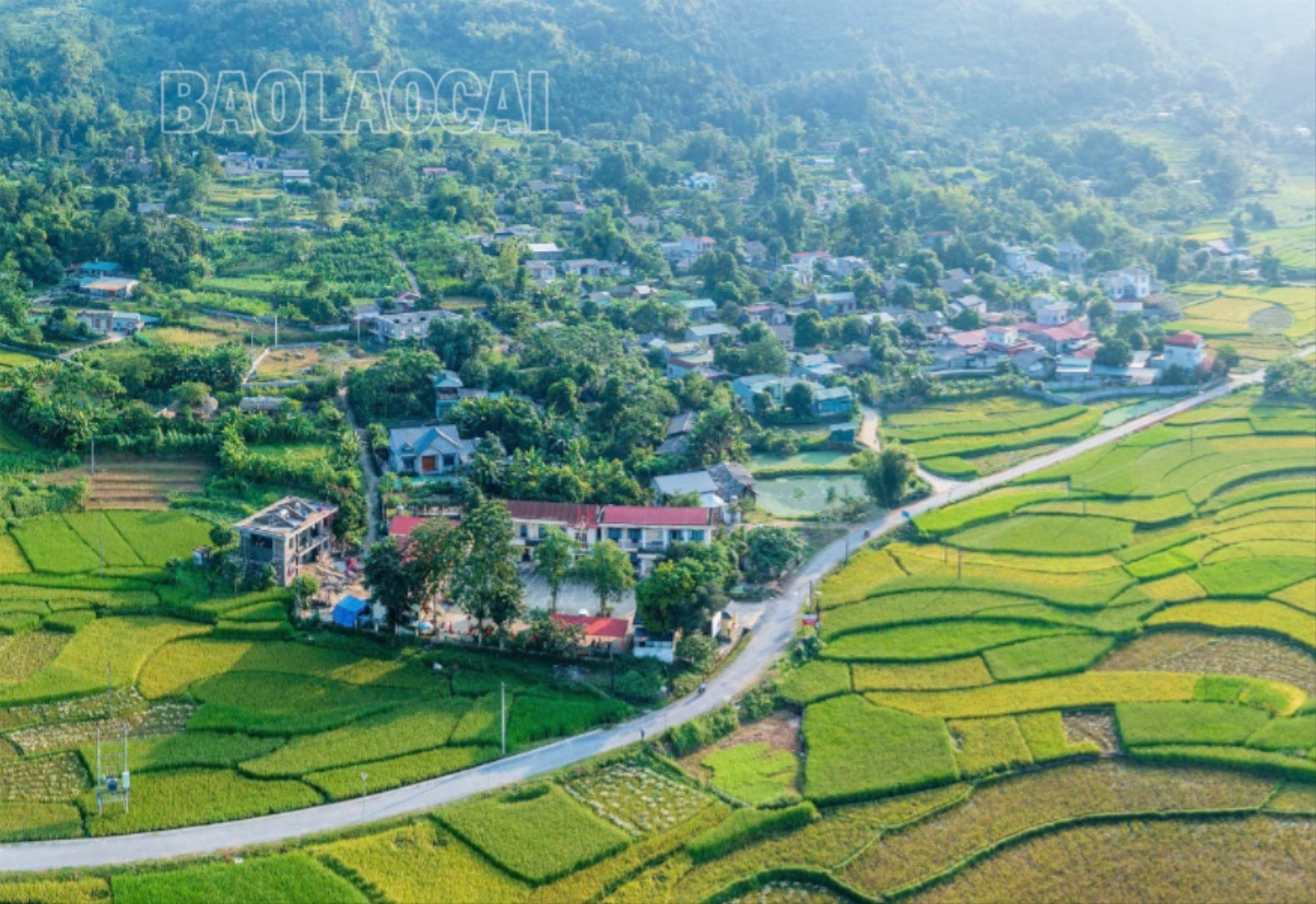 Hợp Thành là xã ngoại ô của thành thành phố Lào Cai, được biết đến là vùng đất có cảnh sắc sơn thủy hữu tình. Nhìn từ trên cao, khung cảnh miền quê hiện ra đẹp như tranh vẽ.