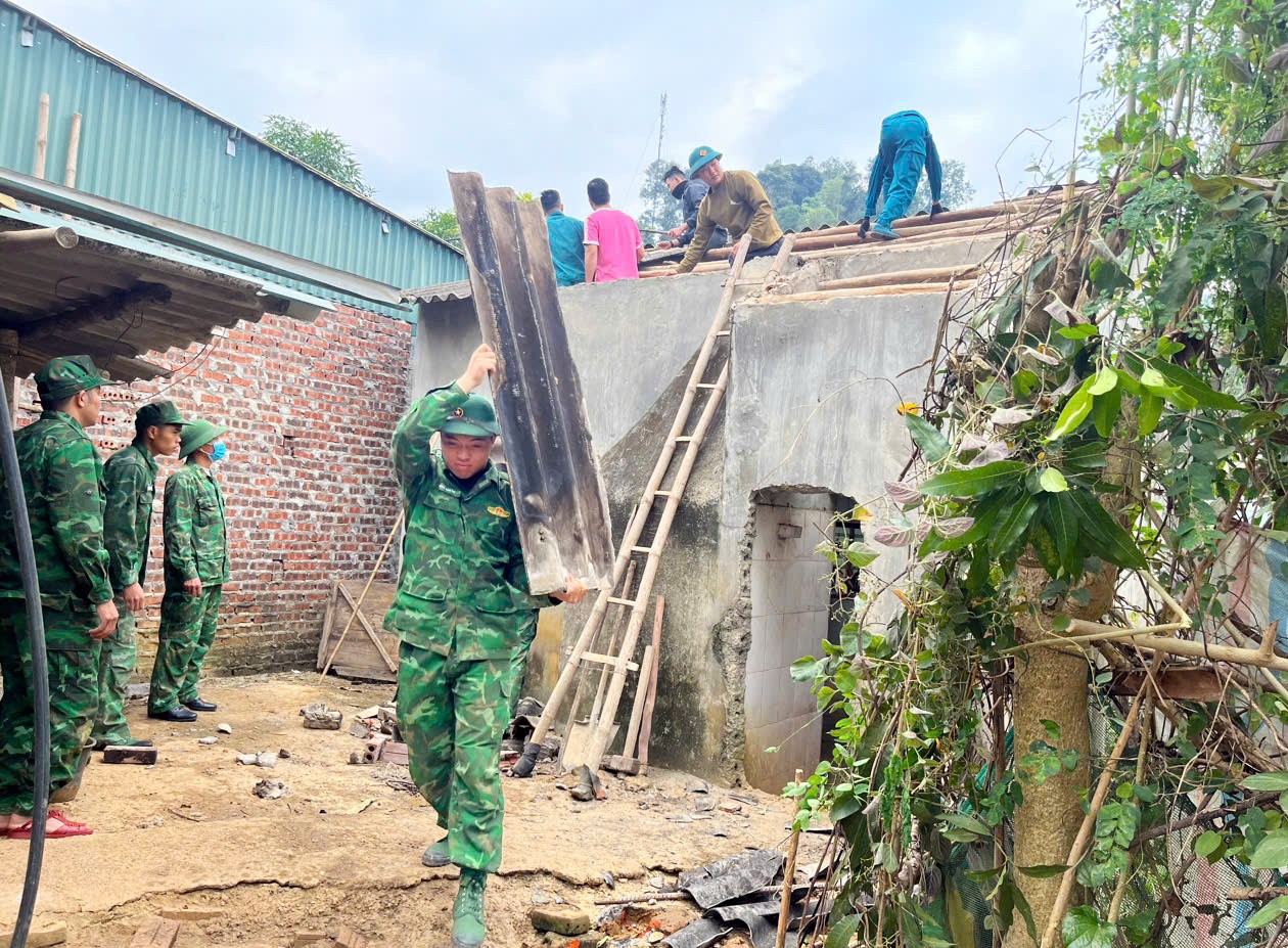 Huy động nhiều lượt cán bộ, chiến sĩ tham gia hỗ trợ các hộ dân tháo dỡ nhà tạm.