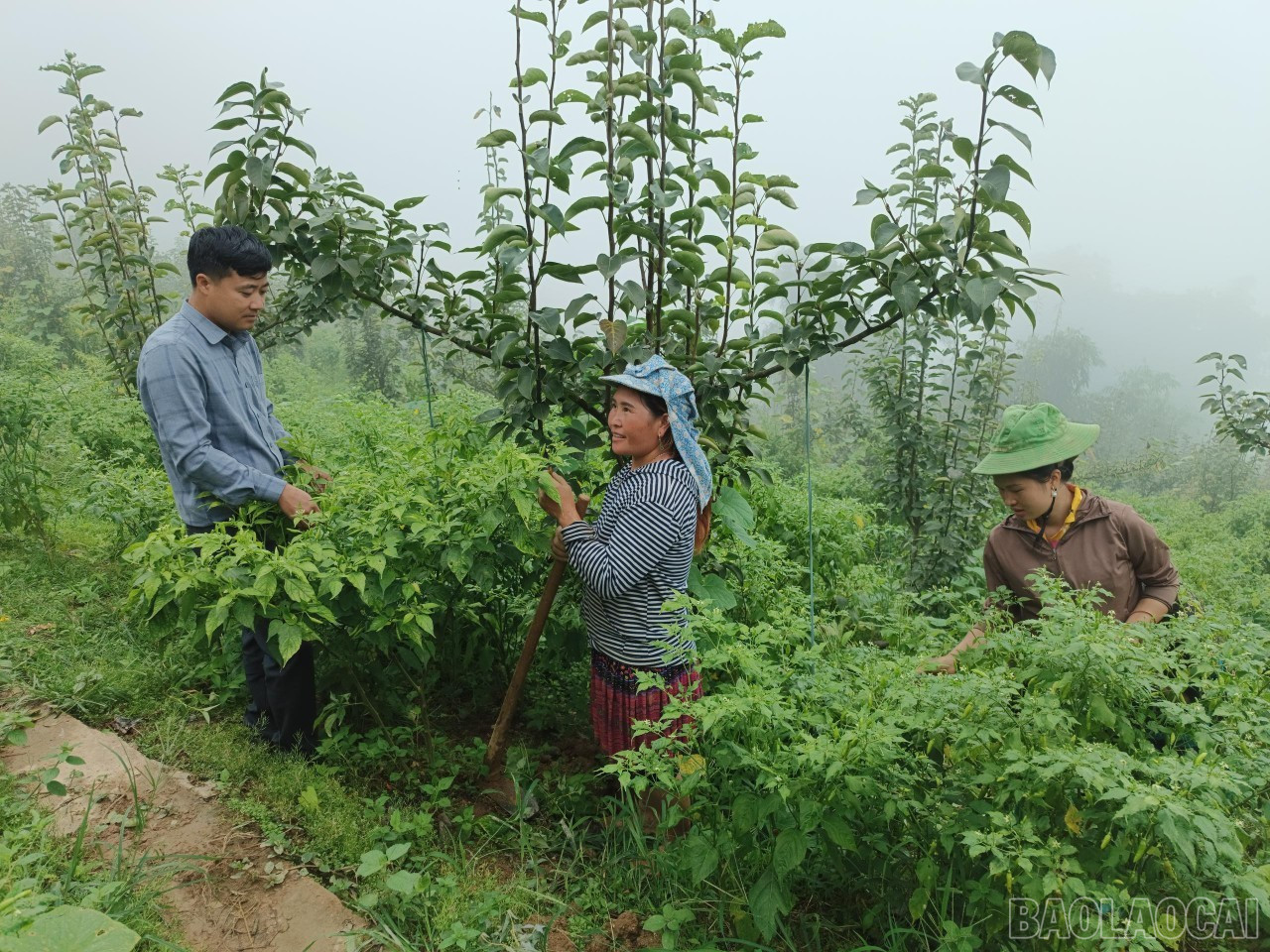 Nông dân Hoàng Thu Phố đưa cây lê Tai nung vào trồng, xen canh ớt địa phương khi cây lê chưa khép tán.