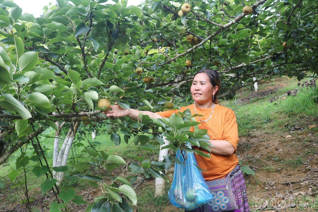 Là một trong những hộ tiên phong trồng cây lê Tai nung trên địa bàn xã, ông Sùng Seo Vần ở thôn Hoàng Hạ chia sẻ: Nhận thấy trồng cây ăn quả sẽ mang lại hiệu quả kinh tế nên tôi đã chuyển một phần diện tích trồng ngô kém hiệu quả sang trồng 400 cây lê Tai nung. Sau gần 3 năm trồng (năm 2022), cây lê đã cho quả, thu về gần 10 triệu đồng. Với đà này, nguồn thu từ quả lê sẽ tăng sản lượng vào các năm tiếp theo khi cây phát triển mạnh.