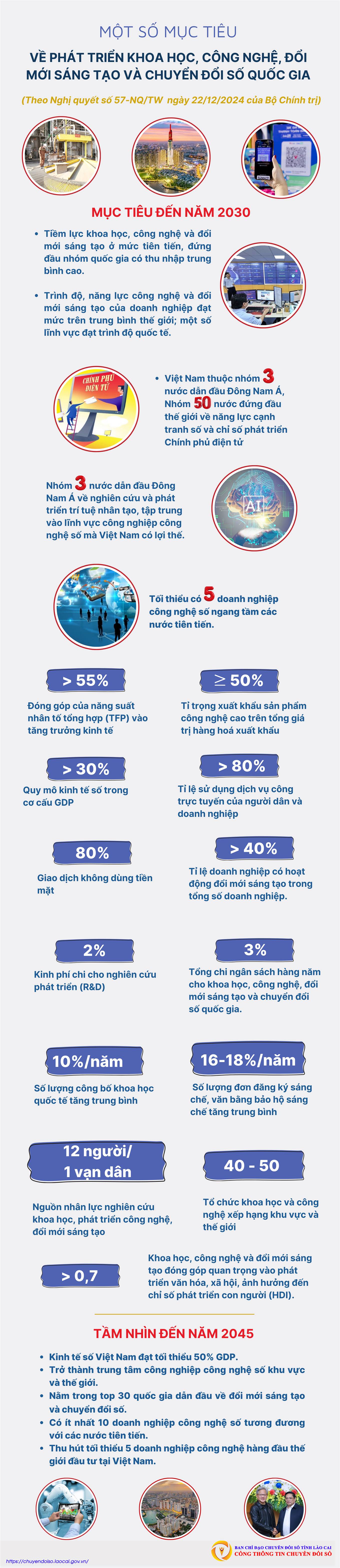 [INFOGRAPHIC] Một số mục tiêu về phát triển khoa học, công nghệ, đổi mới sáng tạo và chuyển đổi số quốc gia