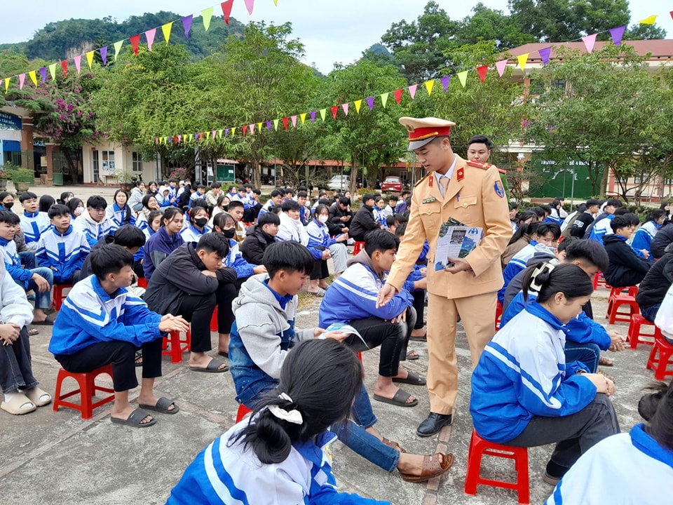 Công an huyện Văn Bàn phối hợp Công an xã Khánh Yên Hạ tổ chức tuyên truyền về trật tự an toàn giao thông cho học sinh Trường THPT số 4 Văn Bàn.