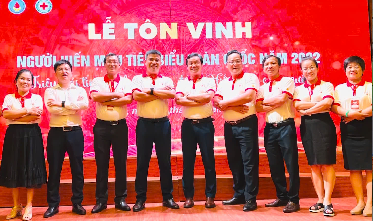 Anh Nguyễn Thế Kỷ (thứ 4 từ phải sang) được tôn vinh người hiến máu tiêu biểu toàn quốc năm 2022 và vinh danh vì cộng đồng.