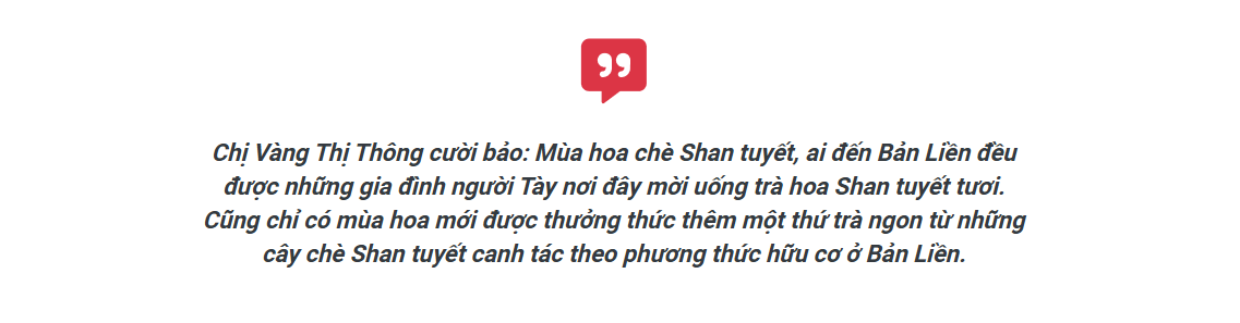 Song hành với thương hiệu trà hữu cơ, các sản phẩm trà Shan tuyết cổ thụ sao thủ công, trà lam gác bếp, giờ đây người Tày ở Bản Liền đã học hỏi và tạo ra nhiều sản phẩm trà, thêm lựa chọn cho người yêu trà, nhưng cũng là cách có thêm nguồn thu từ những đồi chè Shan tuyết.