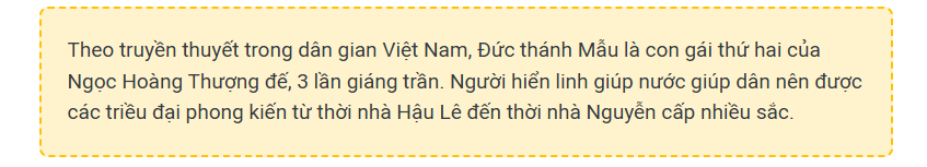 Trong khuôn viên Đền Mẫu, trước linh thờ Thánh mẫu Liễu Hạnh, lễ tế dân gian đã được tổ chức long trọng theo đúng các nghi thức cổ truyền. Chủ lễ dâng hương khai lễ, đội tế của thành phố thực hiện các nghi lễ truyền thống. Với tấm lòng thành kính, cảm tạ công ơn của thánh Mẫu, đội nghi lễ tiến hành dâng hương, dâng hoa và vật phẩm lên thánh Mẫu.