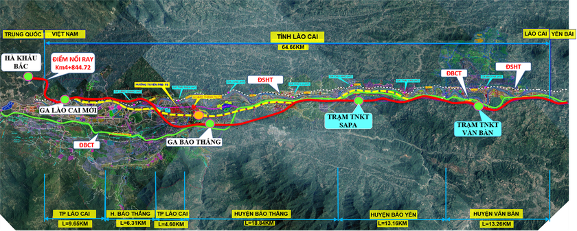 Dự án có tổng chiều dài tuyến chính gần 391km, 03 tuyến nhánh khoảng 27,9Km, phạm vi hướng tuyến đi qua địa phận tỉnh Lào Cai khoảng 65Km đi qua thành phố Lào Cai, huyện Bảo Thắng, huyện Bảo Yên và huyện Văn Bàn. Tổng mức đầu tư là 203.231 tỷ đồng, trong đó chi phí bồi thường, hỗ trợ tái định cư là 35.751 tỷ đồng.
