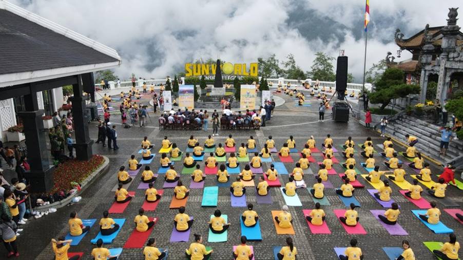 Đồng diễn Yoga trên Ga đi Cáp treo Fansipan.