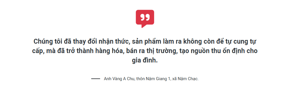 Trên đường đưa tôi đến thăm một số hộ dân được sự trợ giúp của đơn vị đã thoát nghèo như gia đình anh Vàng A Chu, Chảo Láo Ú, Trung tá Vàng A May, Trưởng Ban Dân vận, Đoàn Kinh tế - Quốc phòng 345 chia sẻ: Đơn vị chú trọng hỗ trợ người dân về kỹ thuật trồng trọt, chăn nuôi và tư vấn cách phát triển kinh tế, hướng đến thay đổi căn bản nếp nghĩ, cách làm. Đồng thời, tuyên truyền, vận động để người dân thấy rõ hiệu quả của sản xuất hàng hóa, có sản phẩm trao đổi mới có thu nhập ổn định, lâu dài.