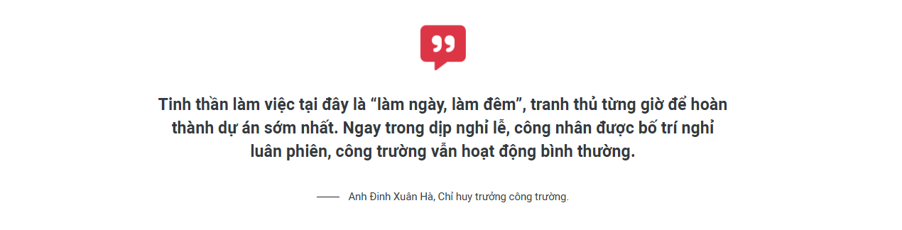 Trên công trường, Tổng Công ty 789 đã dựng nhiều khẩu hiệu thể hiện truyền thống của đơn vị, đồng thời động viên kỹ sư, công nhân thi đua vượt tiến độ dự án. Tuy nhiên, có lẽ điều thôi thúc mỗi người lính thợ nơi đây khẩn trương thi công là mong muốn để đồng bào bị ảnh hưởng thiên tai sớm ổn định cuộc sống. Anh Lường Văn Lính, Tổ trưởng tổ xây gồm 10 thành viên cho biết: Tổ được tăng cường lên công trường cách đây hơn 2 tuần, đến nay đã hoàn thành phần xây thô cho 3 căn nhà, trung bình hơn 5 ngày 1 căn. Đây là lần đầu tiên anh làm công trình đặc biệt như thế này.