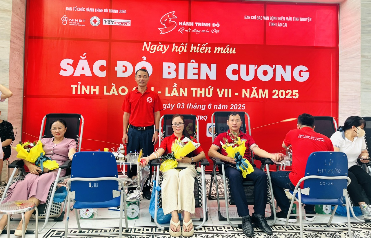 Ngày hội hiến máu “Sắc đỏ biên cương” tỉnh Lào Cai, lần thứ VII, năm 2025 đã thu hút trên 1.500 cán bộ công chức, viên chức, chiến sĩ lực lượng vũ trang, hội viên, tình nguyện viên và nhân dân trên địa bàn thành phố Lào Cai đăng ký hiến máu. Kết quả, Ban tổ chức tiếp nhận được 853 đơn vị máu, đáp ứng nhu cầu máu cấp cứu tại các bệnh viện trên địa bàn tỉnh và tham gia vào “Ngân hàng máu” quốc gia.