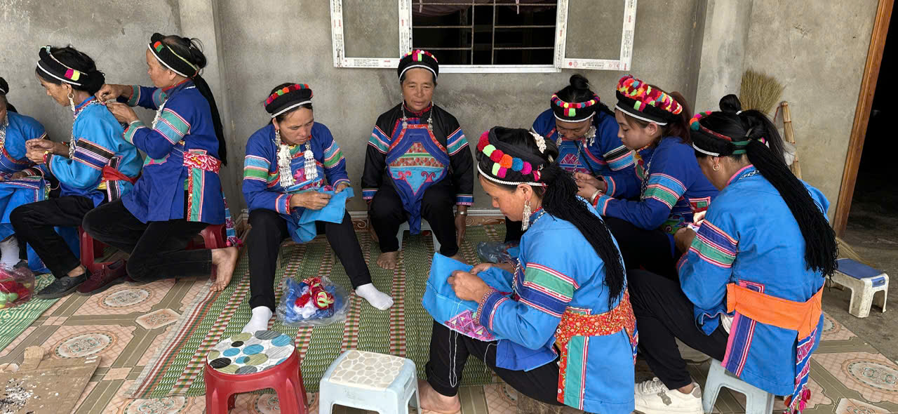 Sự khéo léo trong từng đường kim, mũi chỉ của các bà, các mẹ làm nên những bộ trang phục truyền thống rực rỡ sắc màu của người Phù Lá.