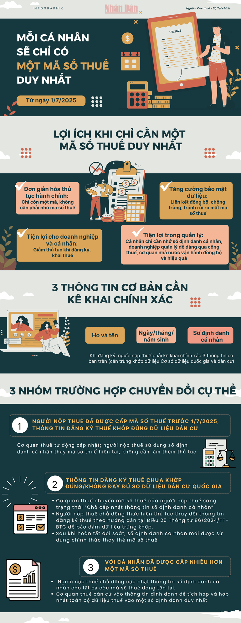[Infographic] Từ ngày 1/7/2025, mỗi cá nhân sẽ chỉ có một mã số thuế duy nhất