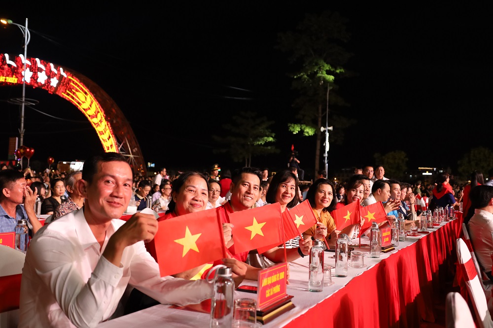 Ngay sau chương trình nghệ thuật, màn pháo hoa tầm cao rực rỡ đã thắp sáng bầu trời biên cương, mang đến niềm tự hào, hứng khởi cho cán bộ, đảng viên và Nhân dân.