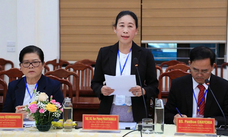 Thạc sỹ, Dược sỹ Van Pheng Phanthanala – Giám đốc Sở Y tế Viêng Chăn phát biểu tại Hội nghị.