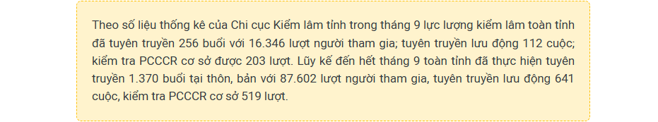 Đồng thời chỉ đạo các đơn vị trực thuộc tăng cường công tác quản lý, bảo vệ rừng, phòng cháy, chữa cháy rừng; duy tu bảo dưỡng dụng cụ và các công trình phòng cháy, chữa cháy rừng, sẵn sàng cơ động, tham gia chữa cháy khi có cháy rừng xảy ra.