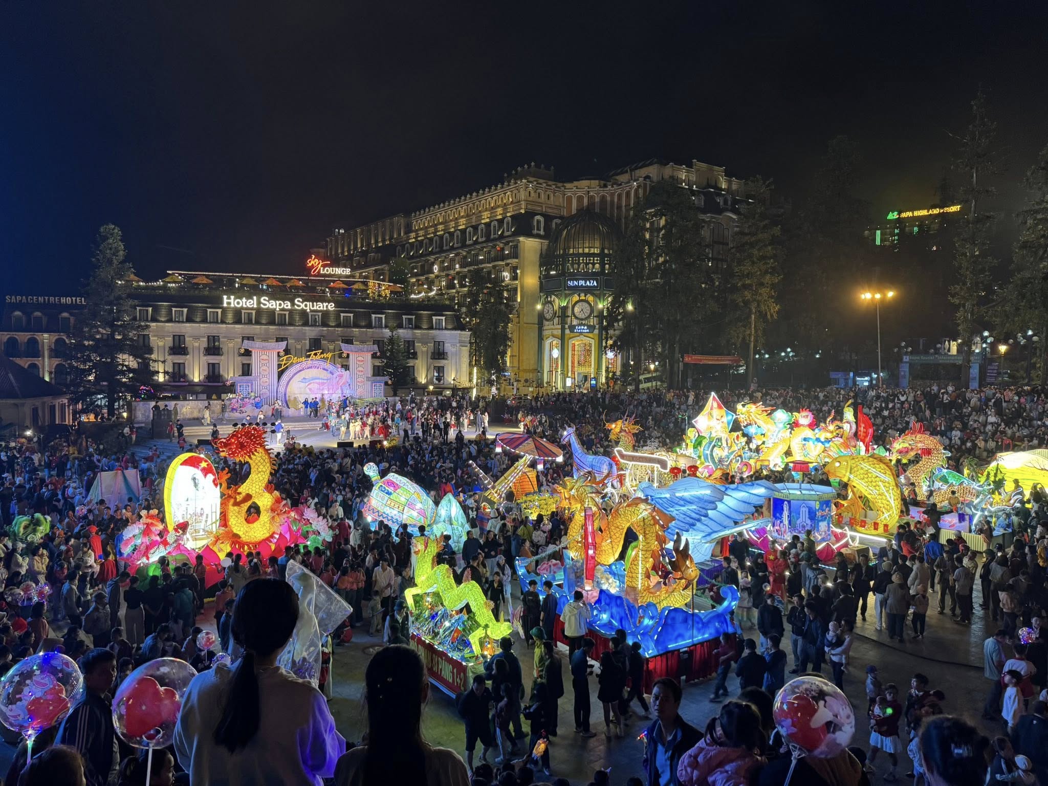 Đêm hội trăng rằm Sa Pa 2025 thu hút đông đảo du khách tham quan.