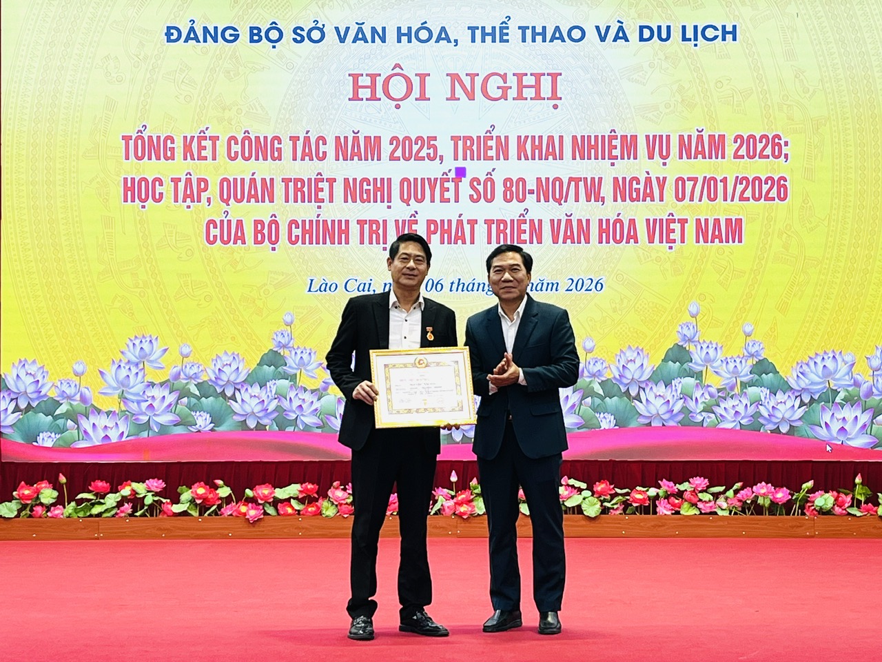 Cùng dịp này, Đảng bộ Sở Văn hóa, Thể thao và Du lịch khen thưởng 02 tập thể “Hoàn thành xuất sắc nhiệm vụ” tiêu biểu năm 2025, tặng 01 giấy khen cho cá nhân có thành tích xuất sắc trong cuộc thi Chính luận bảo vệ nền tảng tư tưởng của Đảng năm 2025.