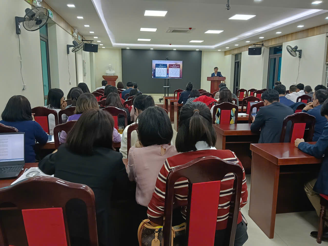 Đồng chí Hà Quang Lâm - Trưởng phòng Thống kê Công nghiệp và Xây dựng truyền đạt nội dung phiếu điều tra doanh nghiệp tại Hội nghị