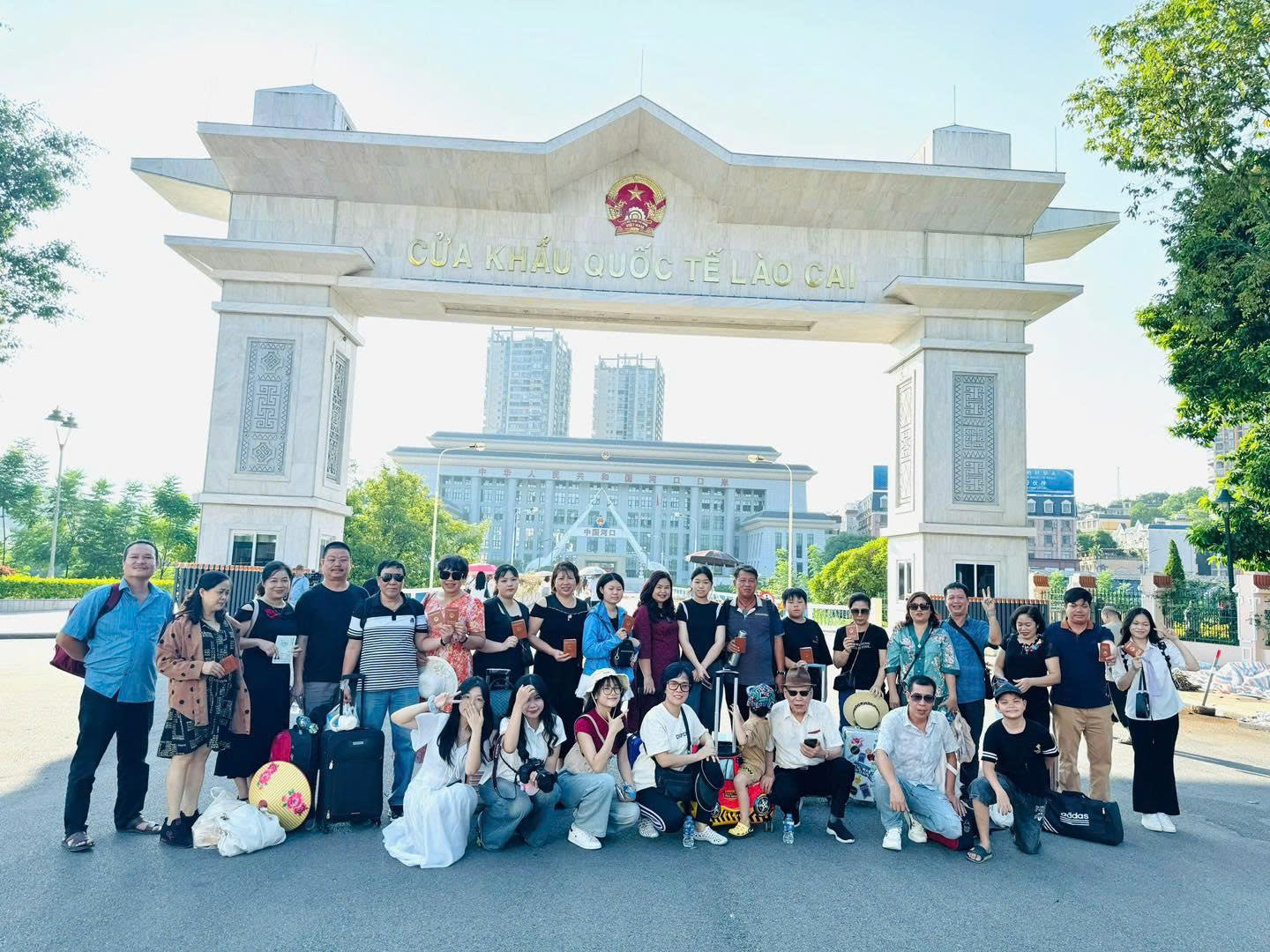 Đoàn khách du lịch làm thủ tục xuất nhập cảnh tại Cửa khẩu quốc tế Lào Cai – minh chứng cho vai trò kết nối thị trường và tổ chức tour của các doanh nghiệp lữ hành trong phát triển du lịch biên giới.