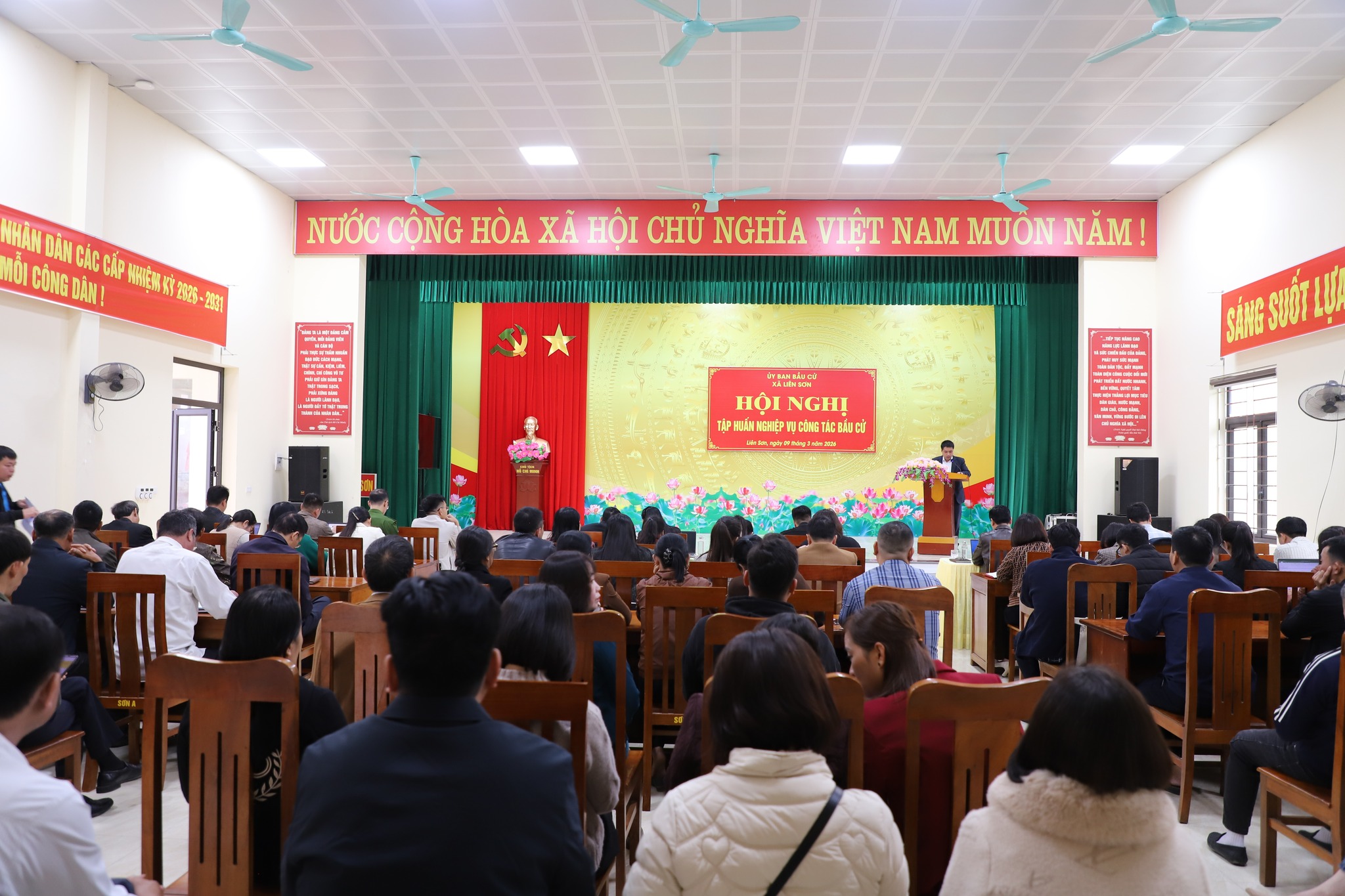 Sáng ngày 9/3/2026, xã Liên Sơn tổ chức tập huấn hướng dẫn nghiệp vụ cho các tổ bầu cử trên địa bàn. Nội dung tập huấn tập trung vào quy trình, nhiệm vụ và các bước tổ chức bầu cử theo đúng quy định của pháp luật.