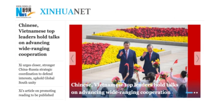 Tân Hoa Xã (Xinhua) khẳng định Trung Quốc sẽ thúc đẩy hợp tác chiến lược toàn diện chất lượng cao với Việt Nam. Ảnh chụp màn hình