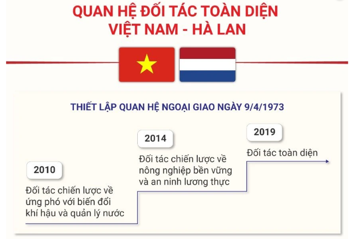 Trong những năm qua, quan hệ Việt Nam-Hà Lan phát triển tích cực trên nhiều lĩnh vực, nổi bật là về đầu tư, thương mại, nông nghiệp và ứng phó với biến đổi khí hậu. Hai bên duy trì thường xuyên trao đổi đoàn các cấp, có nhiều các cơ chế hợp tác song phương; phối hợp chặt chẽ, ủng hộ lẫn nhau tại các diễn đàn, tổ chức quốc tế.