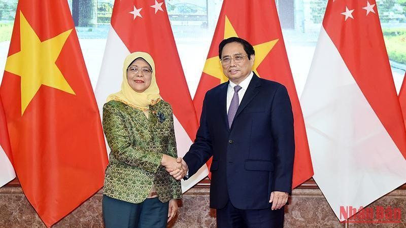 Hai nước cần mở rộng hợp tác sang các lĩnh vực quan trọng của thời đại công nghiệp 4.0 như kinh tế số, chuyển đổi số, đổi mới sáng tạo, kinh tế xanh…; tiến tới xây dựng “Quan hệ Đối tác kinh tế số-kinh tế xanh Việt Nam-Singapore”. Đây là đề nghị của Thủ tướng Phạm Minh Chính tại buổi tiếp Tổng thống Singapore Halimah Yacob chiều 17/10 tại Trụ sở Chính phủ.