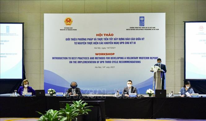 Ngày 14/7, tại Hà Nội, Bộ Ngoại giao phối hợp với Chương trình Phát triển Liên Hợp Quốc (UNDP) tổ chức Hội thảo quốc tế về xây dựng Báo cáo giữa kỳ tự nguyện thực hiện các khuyến nghị Việt Nam chấp thuận theo Cơ chế rà soát định kỳ phổ quát về quyền con người (UPR) chu kỳ III của Hội đồng Nhân quyền Liên Hợp Quốc (LHQ).