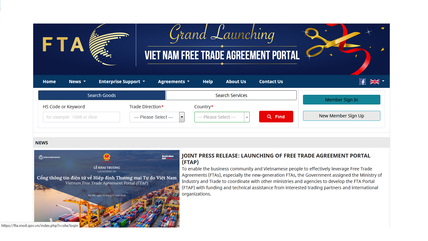 Hôm nay ngày 23/12, Cổng thông tin điện tử về Hiệp định Thương mại tự do Việt Nam (FTA Portal) chính thức khai trương và đi vào hoạt động.