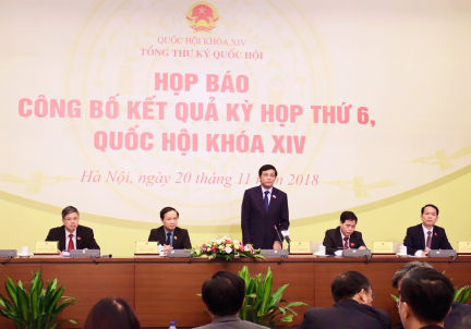 Ngay sau phiên bế mạc kỳ họp thứ 6, Quốc hội khóa XIV, trưa 20/11, Tổng Thư ký Quốc hội đã tổ chức họp báo công bố kết quả kỳ họp.
