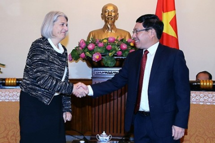 Phó Thủ tướng Phạm Bình Minh tin tưởng Đại sứ Đan Mạch Charlotte Laursen sẽ tiếp tục góp phần làm sâu sắc thêm quan hệ đối tác toàn diện Việt Nam-Đan Mạch.