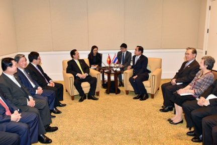 Nhân dịp tham dự Hội nghị Cấp cao đặc biệt ASEAN-Hoa Kỳ tại California, sáng 15/2 (giờ địa phương), Thủ tướng Nguyễn Tấn Dũng đã có cuộc tiếp xúc song phương với Thủ tướng Thái Lan Prayuth Chan-ocha.