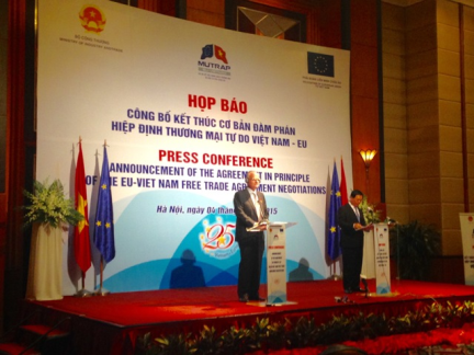 Bộ trưởng Bộ Công thương Vũ Huy Hoàng khẳng định, Hiệp định Thương mại tự do giữa Việt Nam và Liên minh châu Âu (EVFTA) là một trong những Hiệp định có chất lượng cao nhất của Việt Nam và EU, dự kiến sẽ đem lại lợi ích tối ưu cho người dân, doanh nghiệp.