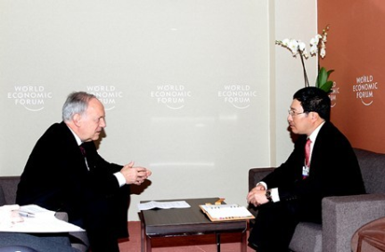 Trong khuôn khổ các hoạt động tại WEF Davos 2015, Phó Thủ tướng Phạm Bình Minh nêu bật sự phục hồi rất tích cực của kinh tế Việt Nam trong năm vừa qua, trọng tâm cải cách và hội nhập kinh tế trong thời gian tới; khẳng định cam kết của Chính phủ ta về cải thiện môi trường đầu tư, đồng thời nhấn mạnh các cơ hội đầu tư sau khi hoàn tất đàm phán các FTA.
