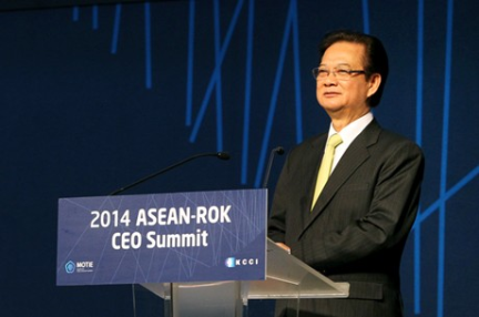 Tiếp tục các hoạt động trong khuôn khổ Hội nghị cấp cao kỷ niệm 25 năm quan hệ Đối thoại ASEAN-Hàn Quốc, hôm nay (11/12) tại TP. Busan, Hàn Quốc, Thủ tướng Nguyễn Tấn Dũng đã tới dự và phát biểu tại Diễn đàn doanh nghiệp ASEAN-Hàn Quốc.