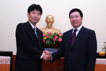Chiều 14/1, Phó Thủ tướng, Bộ trưởng Bộ Ngoại giao Phạm Bình Minh đã tiếp Bộ trưởng đặc trách các lĩnh vực khoa học-công nghệ, công nghệ thông tin, vũ trụ, biển và lãnh thổ Nhật Bản, Yamamoto Ichita, đang ở thăm Việt Nam.