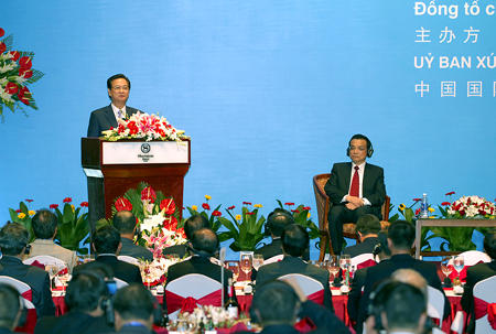 Trưa 15/10, Thủ tướng Nguyễn Tấn Dũng và Thủ tướng Trung Quốc Lý Khắc Cường đã dự tiệc giao lưu doanh nghiệp Việt Nam - Trung Quốc.