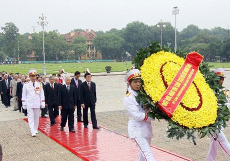 Nhân dịp kỷ niệm 68 năm Quốc khánh 2/9, sáng 30/8, các đồng chí lãnh đạo Đảng, Nhà nước, Mặt trận Tổ quốc Việt Nam đã đến đặt vòng hoa và vào Lăng viếng Chủ tịch Hồ Chí Minh.