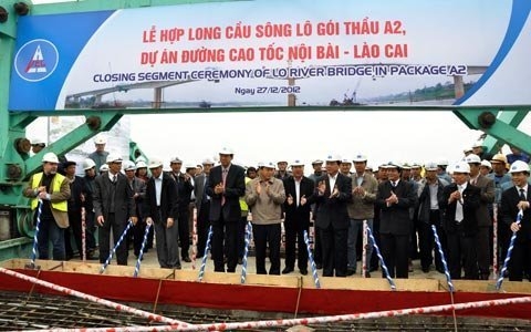 Chiều 27/12, Bộ trưởng Đinh La Thăng đã dự lễ hợp long cầu Sông Lô, một trong hai cây cầu dài nhất trên tuyến cao tốc Nội Bài - Lào Cai.